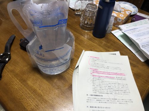 翌朝9時頃から腸内洗浄の薬2Lを2時間かけて飲むのですが、これがかなり苦痛です。味もさることながら飲むたびにトイレとお友達に・・・