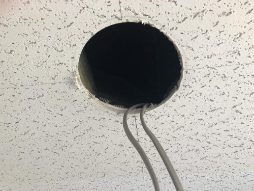 取りはずしたところ。この穴の大きさが何種類かあり事前に調査して明るさと色合いも確認しながら機種選定を行いました。