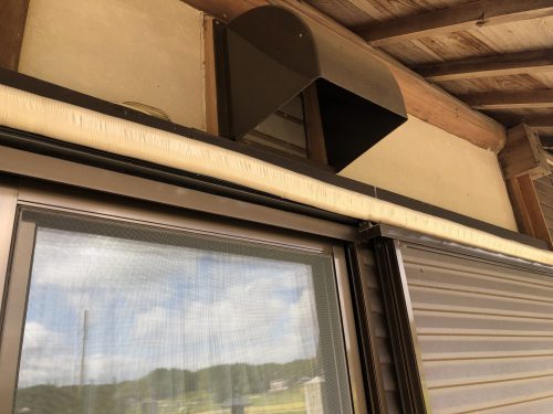 室外側で気密性を保つパテ埋めが出来なかったので室内機側で配管の隙間を埋めるパテ埋めを行いました。