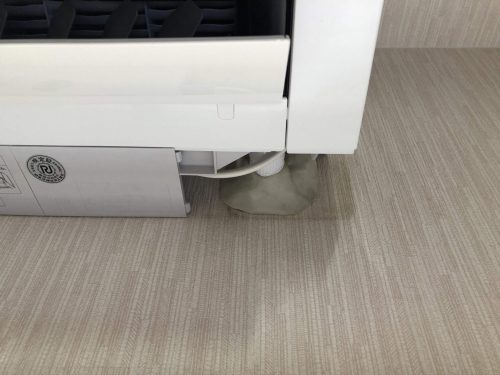 20畳相当のお部屋に18畳相当のエアコンが取り付けられていました。今回は20畳相当の省エネエアコンに取替えさせていただきます。