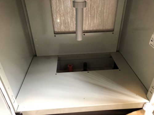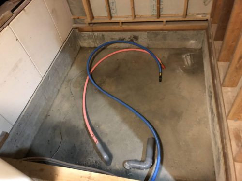 まずは洗面化粧台の設置を。設置場所を変えたので昨日、配管位置を既定位置通りに変更しました。