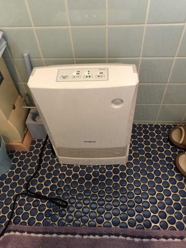 買い替えていただいたのは人感センサー付きのセラミックファンヒータ。素早く温風が出て寒いトイレも快適空間になります。おまけに人感センサー付きで消し忘れの心配もなしです。