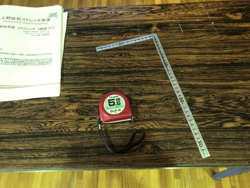 少し早めに行って準備ですが備品も事前に用意されていて段取りも完璧。前屈の時に使うメジャーの数が多い方がいいという事で仕車に積んていたものを降ろしてきました。