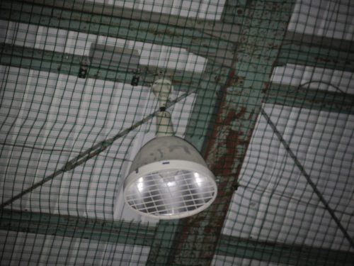 古い水銀灯は器具の背も高くボール避けのネットから突き出していました。