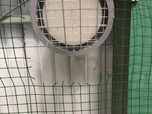 今回LED化にあたり器具の高さも低くなりボール避けネットから張り出すこともなくなったのでネットの穴ふさぎもさせて頂きました。