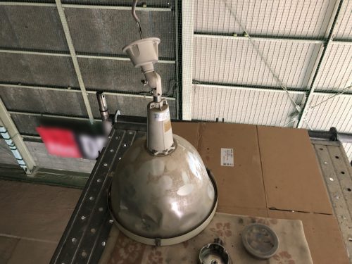 テニスボールが当たったらしくボコボコになってしまった水銀灯のアルミ反射板。これからは大丈夫です!!