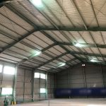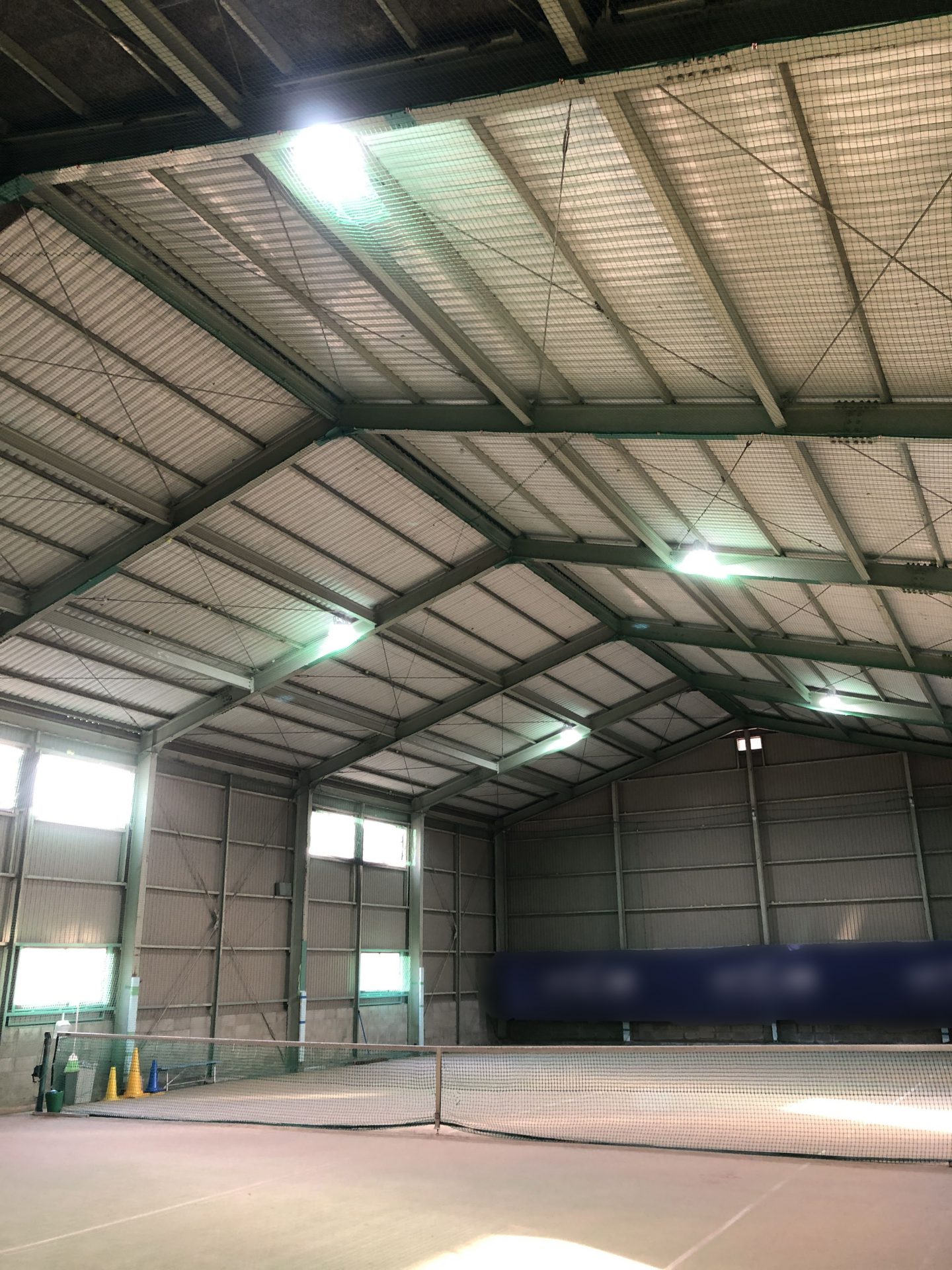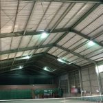 水曜日に屋内テニスコートの照明LED化工事をさせて頂きましたが、今日はその続きでもう一棟の作業をさせて頂きました。