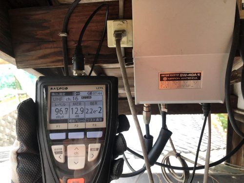 増幅調整などを行ってから室内でも測定器を使って確認した所、問題ない状態に改善する事が出来ました。原因がはっきりしないと「これで様子を見てください」となってしまうところですが今回は原因もはっきりしたので「これで完璧です。安心してください」と笑顔で答える事が出来ました。