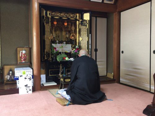 お盆休み初日の午前中は少しゆったりした時間を過ごして、午後からは住職さんが棚経に来られました。