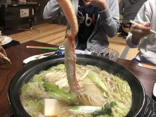 スキーの後はお楽しみの鍋パーティー〜今夜はカニ鍋♫