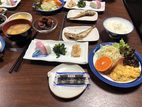 いつもお世話になる民宿の朝ごはんは美味しい(^-^)お腹満腹です。