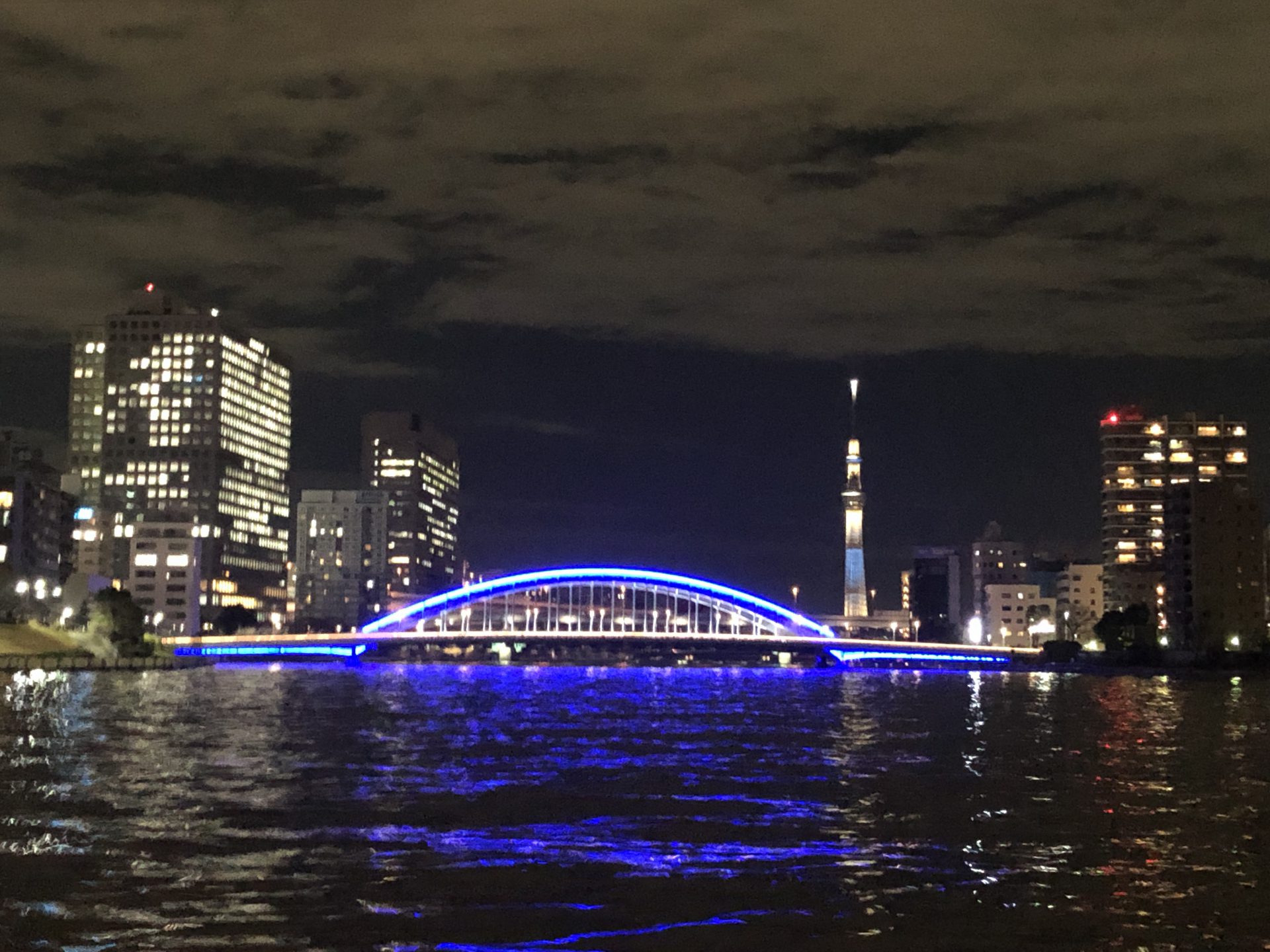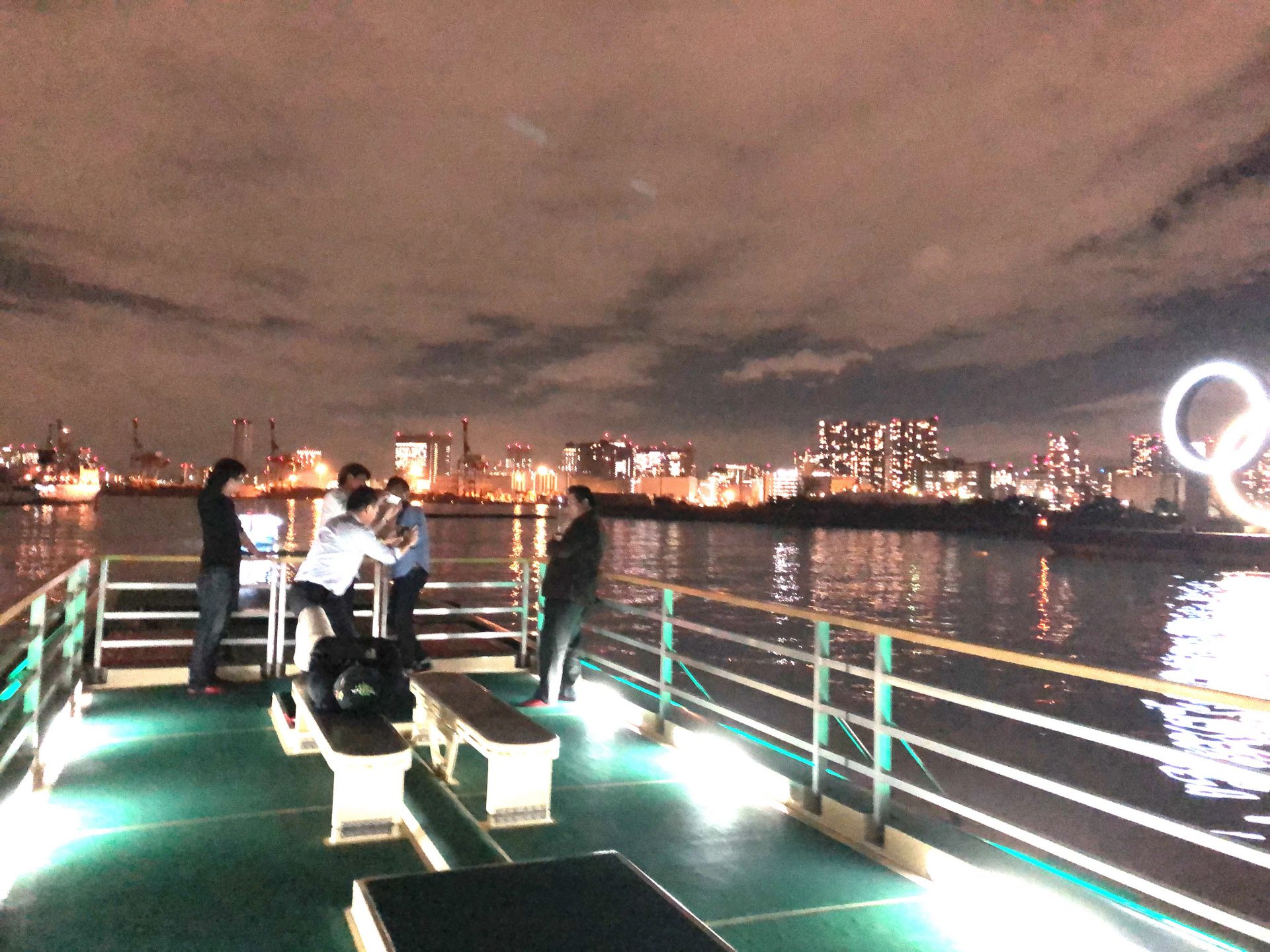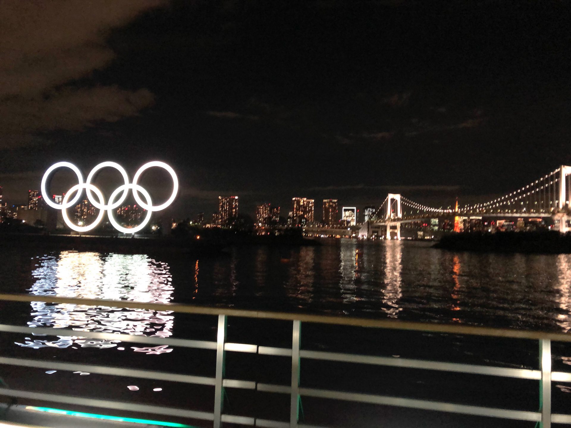 屋形船の上から見る夜景も最高に良かったです。今しか見られない巨大五輪シンボルも見る事が出来ました。