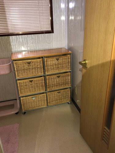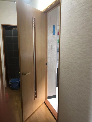 脱衣場に入る方向に向かって開くドア、入る時にも出るときにも体を避けなければならず不便だというご相談をいただきました。