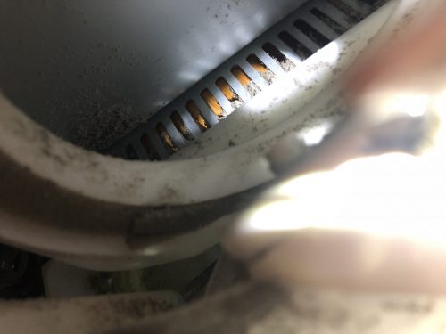 狭いスペースでうまく吸い出すのが難しい。歯ブラシも届かないし車に積んであった針金を駆使して何とか掃除を終えました。