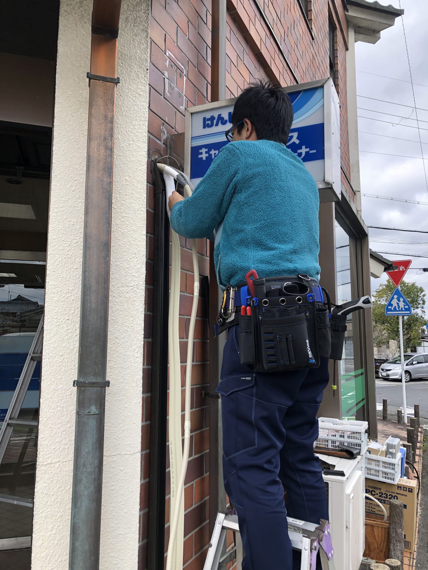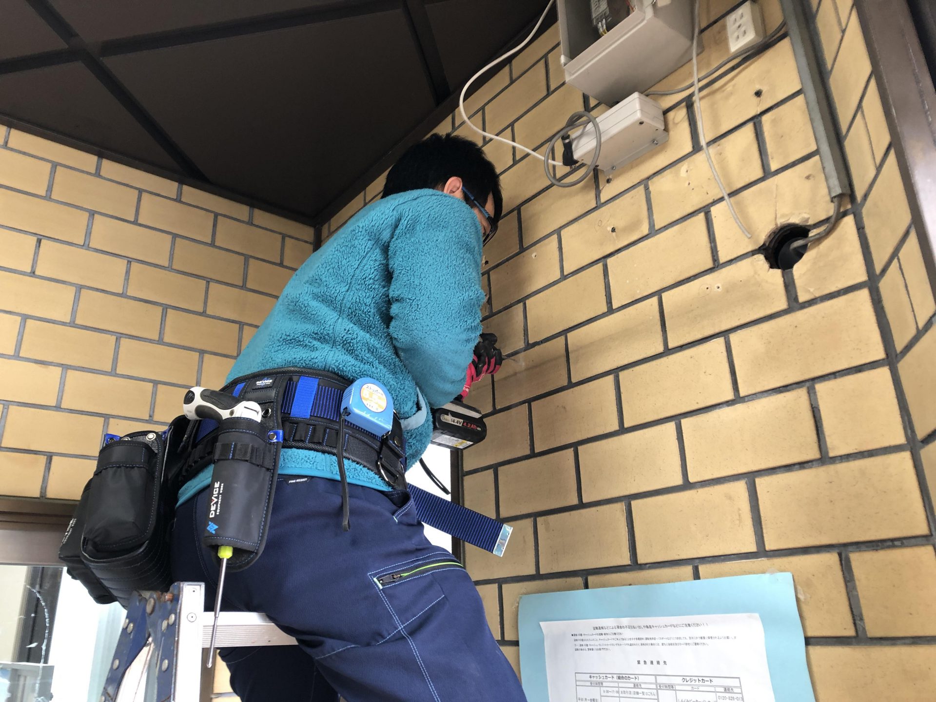 室内機が取り付けられたところでN君は室外側の配管接続、僕は警備会社の遠隔システムとの接続インターフェースの取付を行います。
