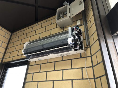 いつもお世話になっているお客様よりATMコーナーのエアコンが故障したので取り換えてほしいとご依頼をいただきました。