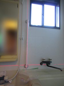 手すりは体重を部分的にを支える重要な場所なので確実に固定します。場所や高さは実際に浴槽に入って頂いてつかみやすい場所、力の入りやすい高さなどを確認しました。
