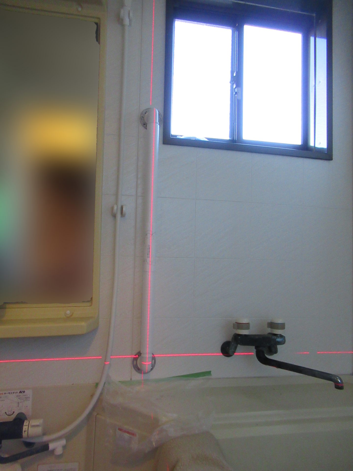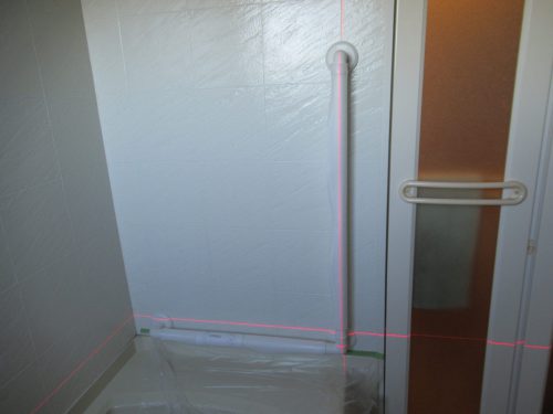 お風呂に入る時と出るときにつかまって力が入れやすい場所に手すりを取り付ける提案をさせていただきました。早速ご注文いただきましたので施工させて頂きました。