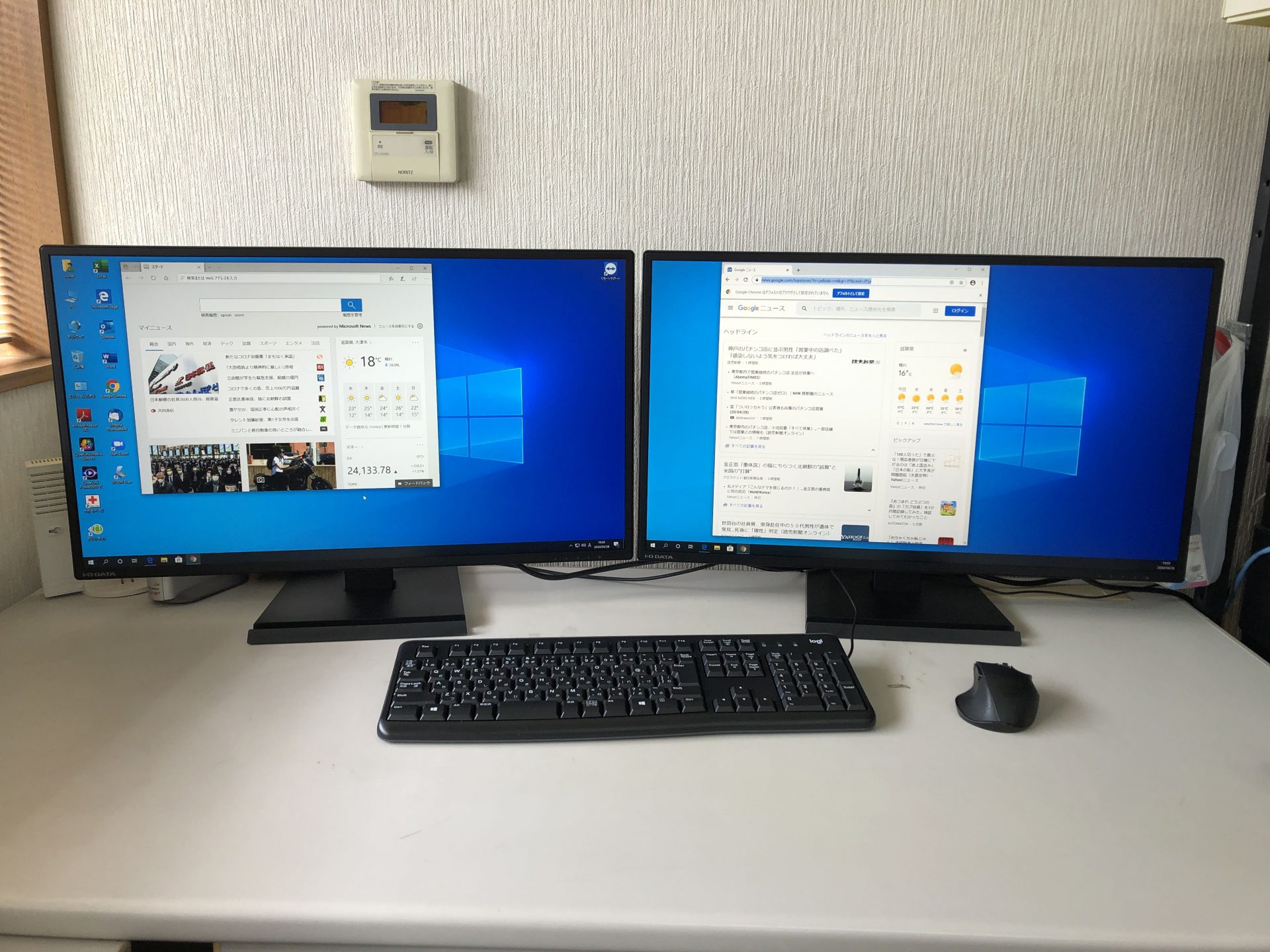 27インチ液晶モニターを2台並べて作業領域を大きくとれる仕様です。僕も同じ構成で使っていますが、紙に印刷する書類が大幅に減りました。今までなら印刷した紙を見ながら入力していたものを片方の画面に表示しながら入力できるのです。