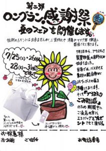 毎年恒例でありました夏の感謝祭ですが、コロナ渦の中で多数のお客様にご来店いただくのを避けるために期間を7/25(土)26日(日)・28日(火)~31日(金)までのロングラン夏のフェアと題して開催させて頂いています。
