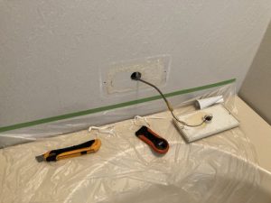 家の中の作業で一番大変なのはお風呂のリモコン取替。シーリング材を綺麗に剥がすのに結構時間がかかります。新しいリモコンを付ける際には固定ビス用の穴を開けたりするので切粉が落ちて錆が出ないようしっかり養生も行います。