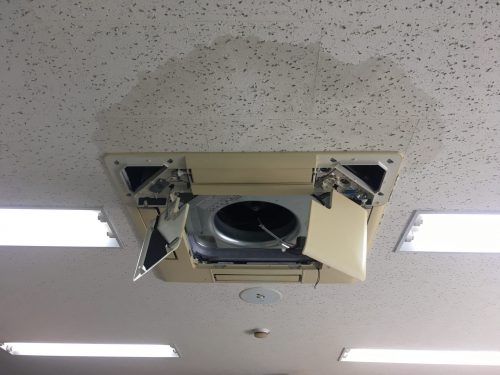 午後からは先日水漏れ修理させて頂いた天カセエアコンの天井に付いたシミが広がっているとの事で再度水漏れがないか確認に伺いました。