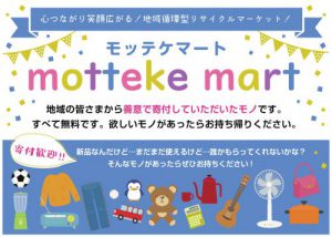このリサイクルマーケット(もってけマーケット)は今後も店頭で続けて行きますので商品を持ってきていただくのも、取りに来るのもいつでもOKです。持ち込みできる商品の内容について詳しくは>>このチラシ<<を参考にしてくださいね。