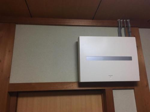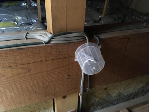露出配線されていた部分は天井裏に入った際に壁裏を通して配線を見えなくし、穴部分も補修します。