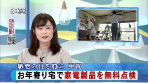 9月~10月にかけて滋賀県電器商業組合加盟のまちのでんき屋さんが家電製品の安全点検訪問活動を行っているのですがその活動の様子が9月16日(木)のNHK大津放送局のおうみ630で放映されました。