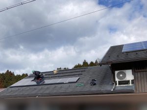 10時前には屋根も乾いて太陽光パネルの設置は順調に進みます。
