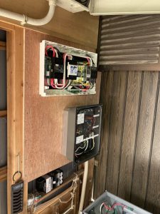 翌日はパワコン周りと連携ブレーカーまでの幹線、蓄電池コンバータから蓄電池への配線を施工しました。