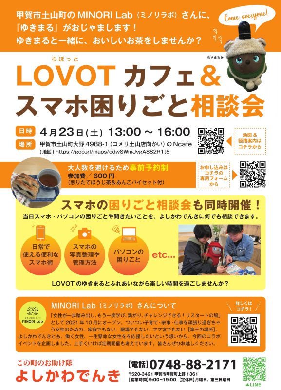 より楽しんで頂きたいとの思いからカフェの一角をお借りして・・・さらに滋賀県では初の試み「LOVOT(らぼっと)カフェ」も同時に開催します。