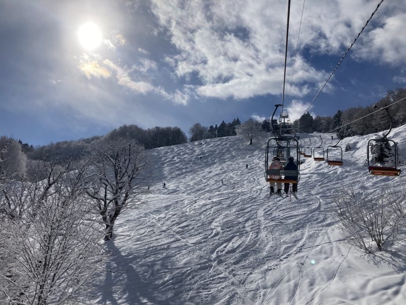 2日~4日は恒例の奥神鍋でスキーを楽しみました。2日目は頂上付近だけ抜けるような晴天♪