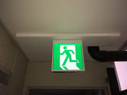 壁面付けの非常誘導灯は対応できるカバーがありませんでした。