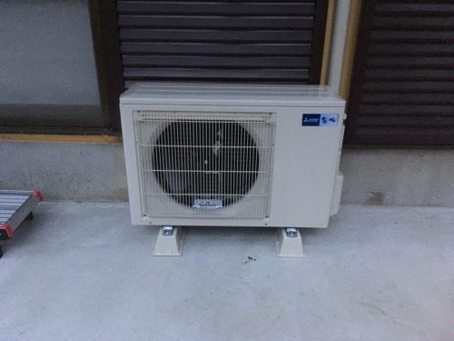 雨がかなり強く降っていましたが物干し用の屋根の下で室外機取付作業だったのでかなり助かりました。