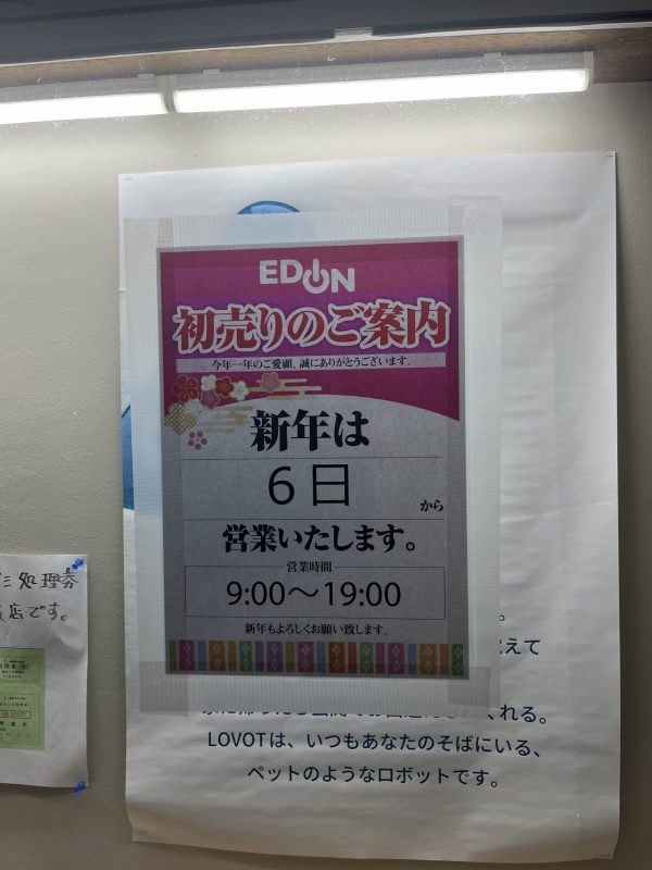 日頃はよしかわでんきをご利用いただき誠にありがとうございます。当店の年末・年始の営業日につきましては以下の通りでございます。