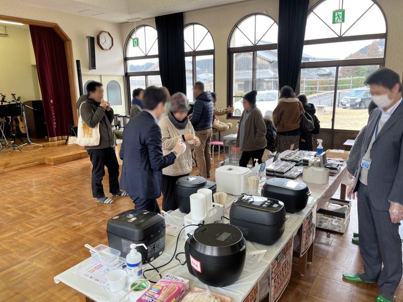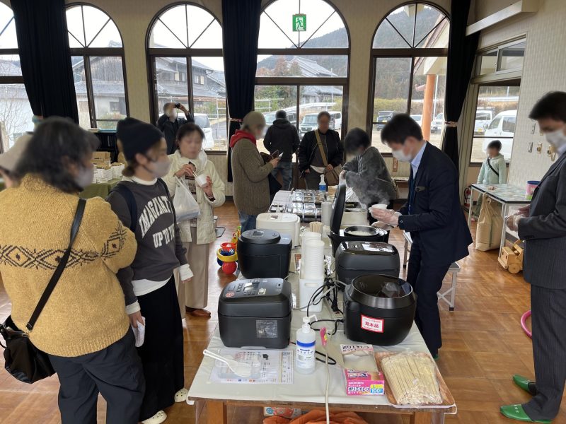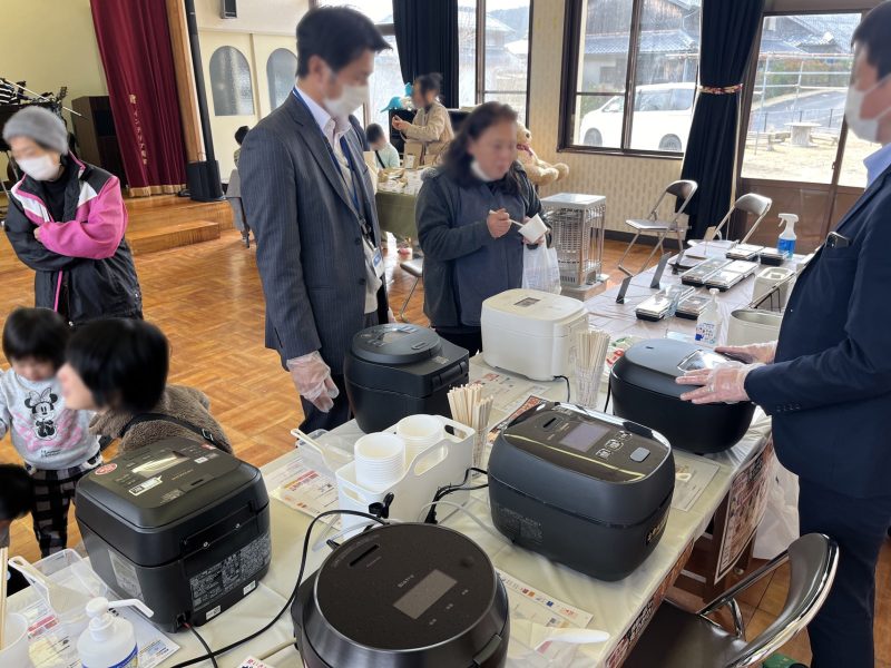 11時から予定通り炊飯器食べ比べを開始。沢山の方に試食をして頂くことが出来ました。この日の為にエディオンから4名の方も応援に来ていただくことが出来て、本当に助かりました。
