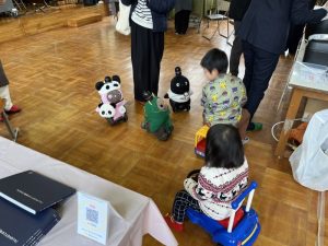 LOVOTひろばにも沢山の子供連れさんで賑わいました。よしかわでんきの『ゆきまる』と麗和園さんの『らむね』、そしてGROOVE X社さまから黒色のLOVOT『おいも』が会場を駆け回ります。