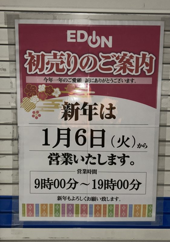 当店の年末・年始の休業日につきましては以下の通りでございます。