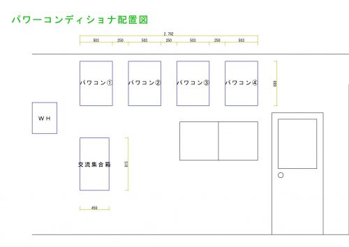 その設置の様子を準備このブログで紹介していきたいと思います。いつもは太陽光パネルから設置にかかりますが、他の工程との関係上交流盤やパワーコンディショナ周りからの施工です。