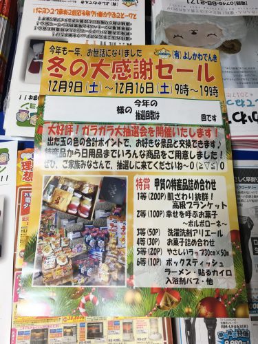 今日は定休日でしたが、12月9日(土)10日(日)に冬の大感謝祭開催準備を頑張っていました。