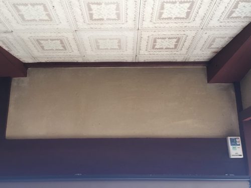 土壁のこの場所に室内機を取り付けるので地震等で室内機が落下しないようタテ桟を使って確実に取付します。