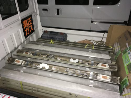 この荷物の隙間をぬうようにかわしながらLED化工事を進めさせていただきました。