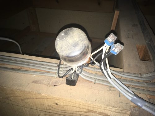 古い配線は全て撤去して、電気配線もやり直しました。このジョイントボックスでは配線が収まらないので改めて大きなボックスに交換させていただきます。