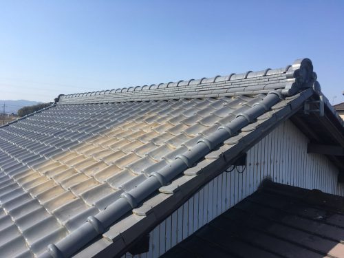 瓦の隙間から出ていた固定用の針金も瓦を外して全て撤去しました。アンテナも撤去しましたが破風に付いている固定金具は破風の痛みが激しいためそのまま残しました。金属屋根の傷みも激しいので合わせてリフォームの提案もさせて頂きました。
