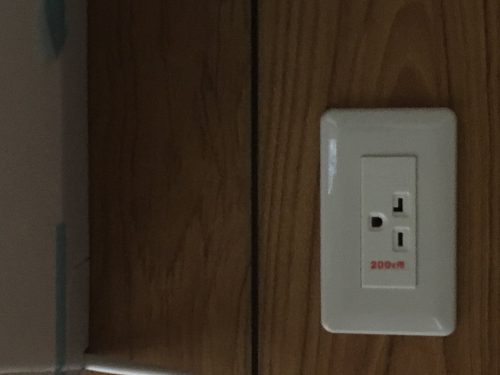 埋込コンセントを取り付ける為に壁を開口します。コンセントの向きはこの方向に付けたいのですが「200V用」の文字が反対向きになるので・・・