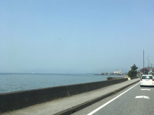 鳥人間コンテストで有名な琵琶湖の彦根市松原水泳場を通り抜けて晴天の中、湖岸道路を気持ちよく目的地に向かいます。