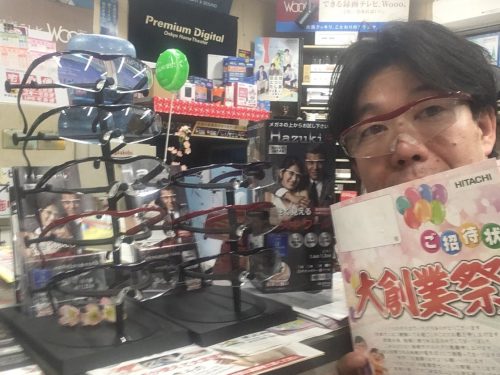 舘ひろしさんのCMで話題のハズキルーペ、種類が大幅に増えています。4月21日(土)22日(日)の創業祭招待状を手渡しさせて頂いていますが、ハズキルーペのサンプルをお試しいただき好評いただいています。