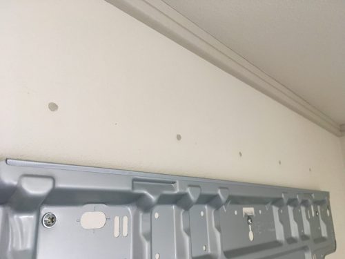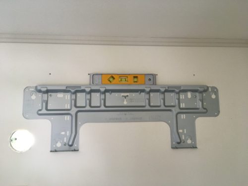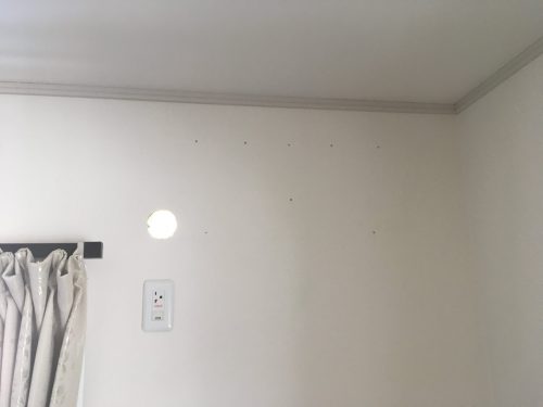 ネジ穴をパテで埋めましたが、室内機を取り付けるとギリギリ見えない位置です。