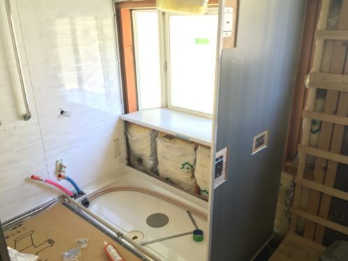 無事組みあがりました。あとは脱衣場も床が傷んでいたのでそちらの作業も地元の大工さんにお願いして作業いただいています。